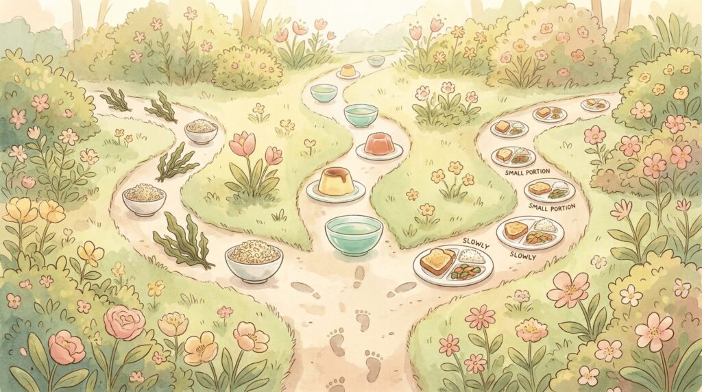 食物繊維の摂り方ガイドでも触れたように、数日ごとに2〜3gずつ増やし、お腹の反応を見ながら調整していきます。