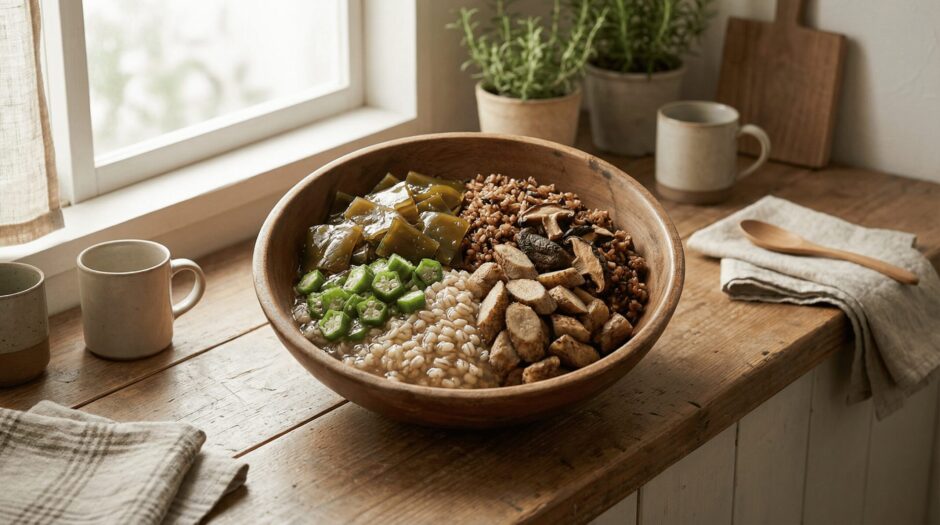 お腹が緩い時期は、不溶性繊維をいったん控えめにして、海藻や大麦など水溶性の食品を中心にしてみるという選択肢があります。